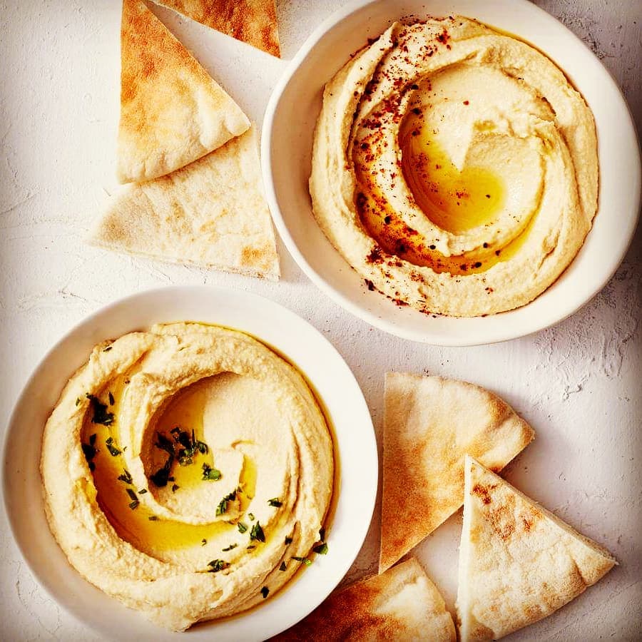(8'' Tray. Serves 8-10) Mashed chickpeas blended with sesame tahini, garlic, lemon juice and spices.