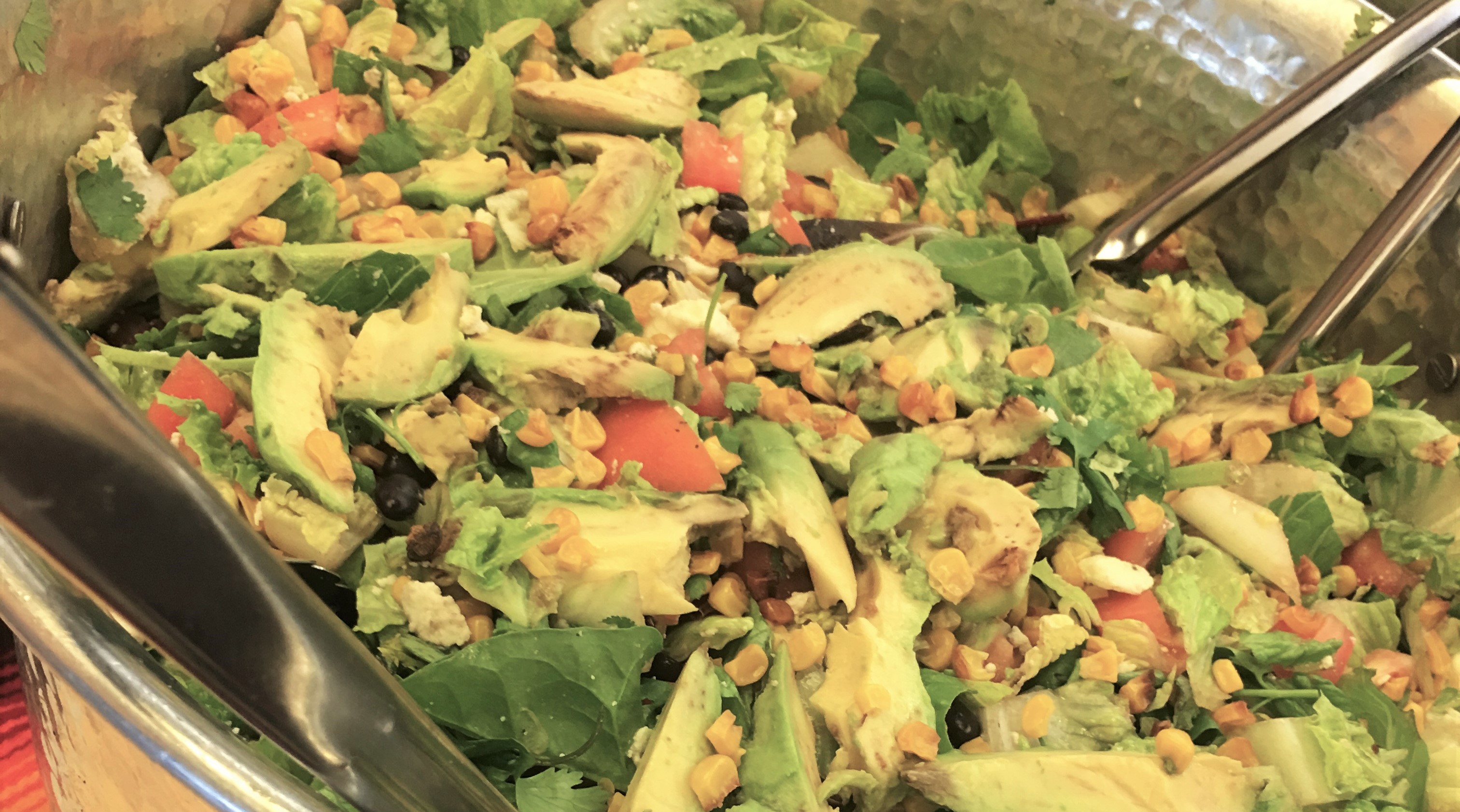 Mixed greens, diced tomatoes, roasted corn, black beans, cilantro and avocado topped with queso fresco and served with a creamy southwest dressing.