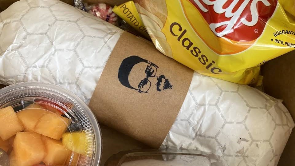 Mortadella, proscuitto, genoa salame, mozzarella, and spring mix wih a giardiniera spread and on a French roll with fig jam on the side.. Served with potato chips, dessert and beverage.
