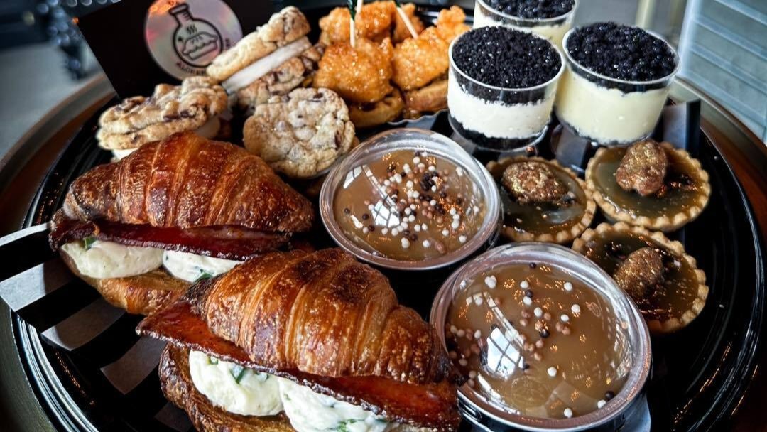 Includes three peppermint buttercream cosmic brownies, four chocolate chip cookies for Santa, three eggnog crem brulees, three candy swirl buttercream sugar cookies, three cherry bakewell croissant...
