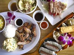 (Per person / 100 minimum) Huli Huli chicken, white sticky rice, mac potato salad, your choice of 1 side, fortune cookies and sweet iced tea.