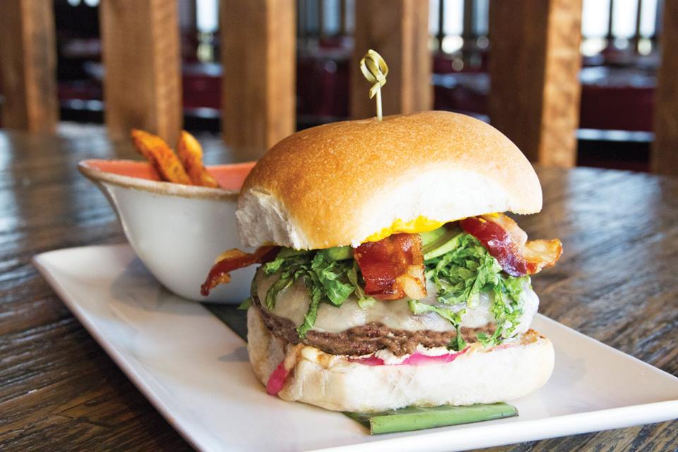 Poblano white queso, grilled jalapenos, bacon, onion, tomato, smoked mustard on grilled hallah bun, served with your choice of side.