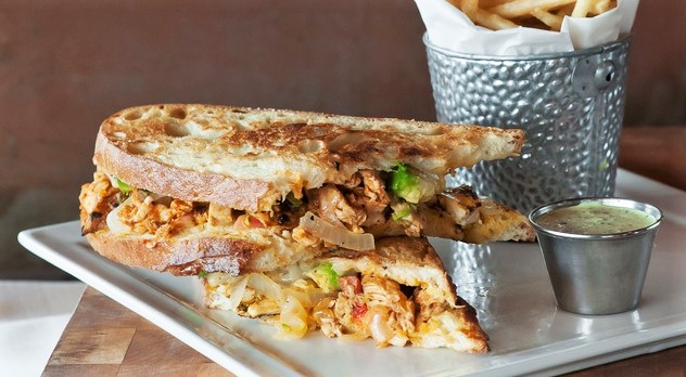 Grilled or plantain crusted chicken, spicy black bean sauce, avocado, provolone, lettuce and tomato on a sweet sourdough bun, served with your choice of side.