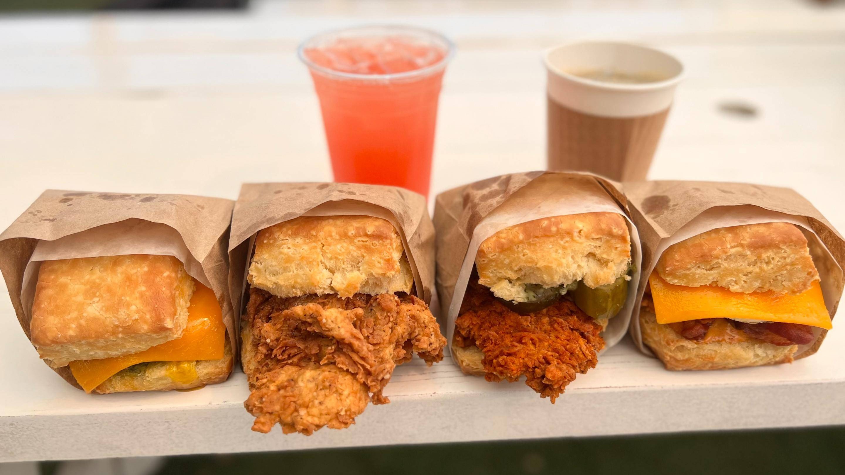 (6 Sandwiches) Spicy fried chicken breast, dill mayo, thick cut spicy sweet pickles, cilantro