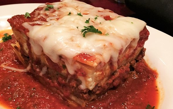 Layers of delicious lasagna, spicy Italian sausage, meat sauce and three cheese topped with marinara sauce and mozzarella cheese. Served with a house salad with house vinaigrette.