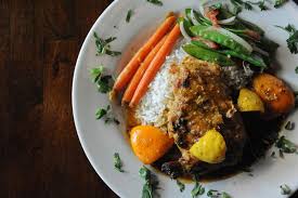 Sweet and sour puree of walnuts and pomegranate sauce, served over baked tender chicken and white basmati rice.