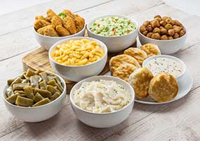 Includes 6 oz. gravy or dipping sauce, biscuit and your choice of side.
