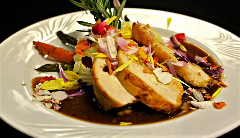 (10 MINIMUM) Grilled chicken breast served with a spicy chipotle cream sauce and topped with black bean & corn salsa. Served with freshly baked dinner rolls, butter and your choice of 2 sides.