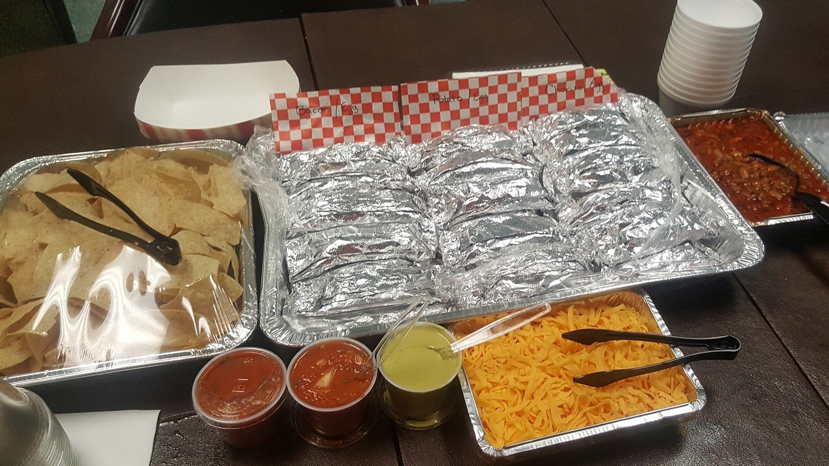 (8 minimum) Diced beef and chicken fajita meat served with grilled onions, refried beans, Mexican rice, sour cream, guacamole, diced tomatoes, shredded lettuce, shredded cheddar and chips & salsa.