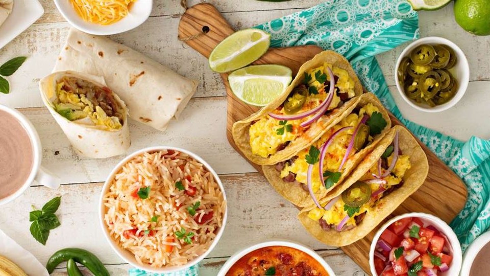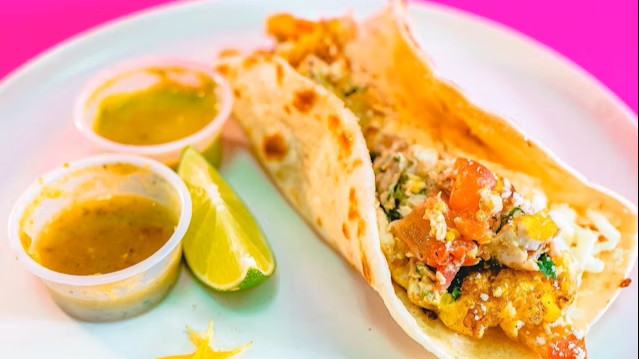 Bacon, scrambled egg, Mozzarella cheese, Cotija cheese on a flour tortilla. Served with jalapeno salsa on the side.