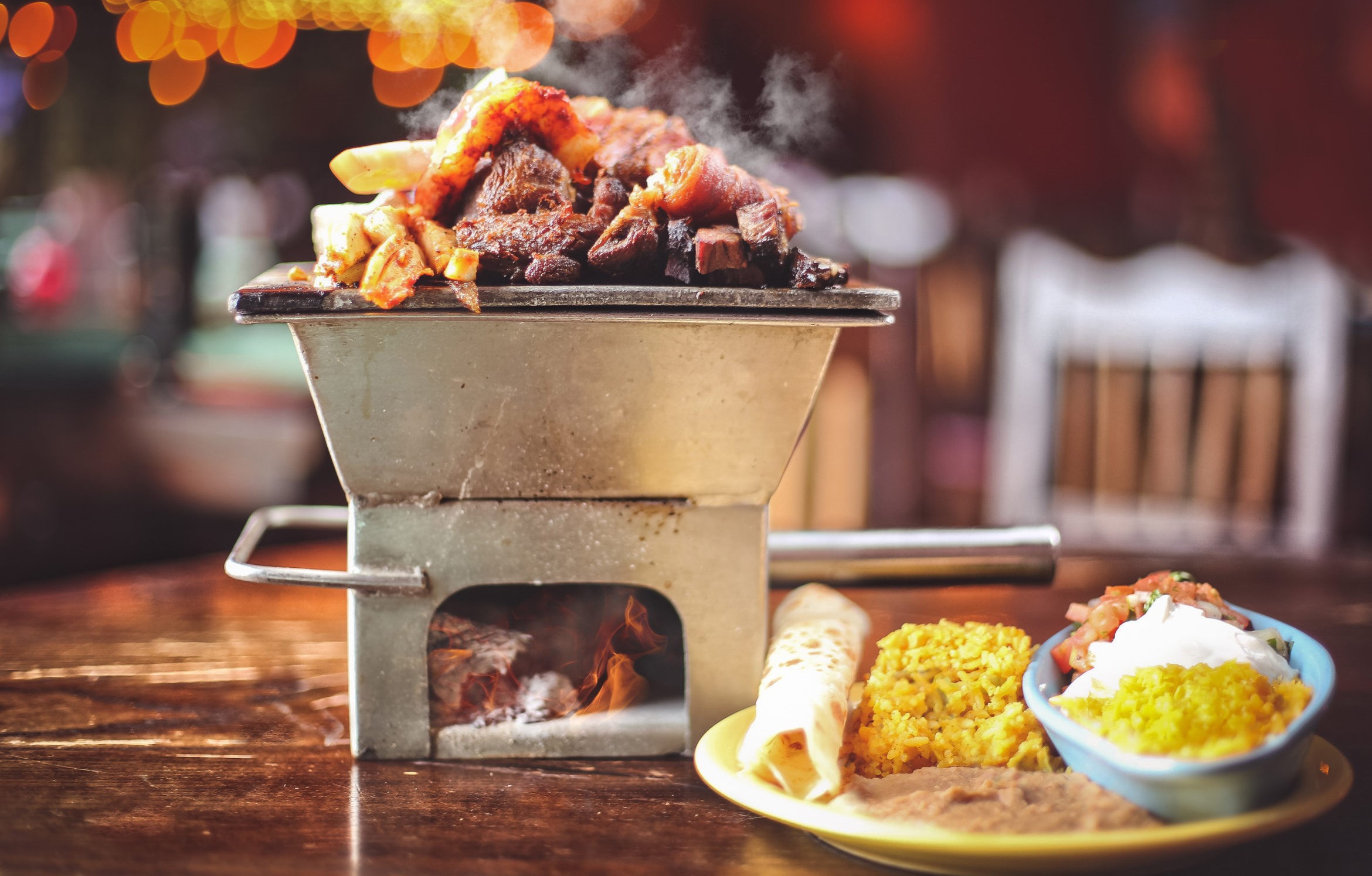 Your choice of fajitas on a bed of grilled onions, served with chips & salsa, guacamole, chili con queso, sour cream, cheddar cheese, pico de gallo, jalapenos, and fresh tortillas, with your choice...