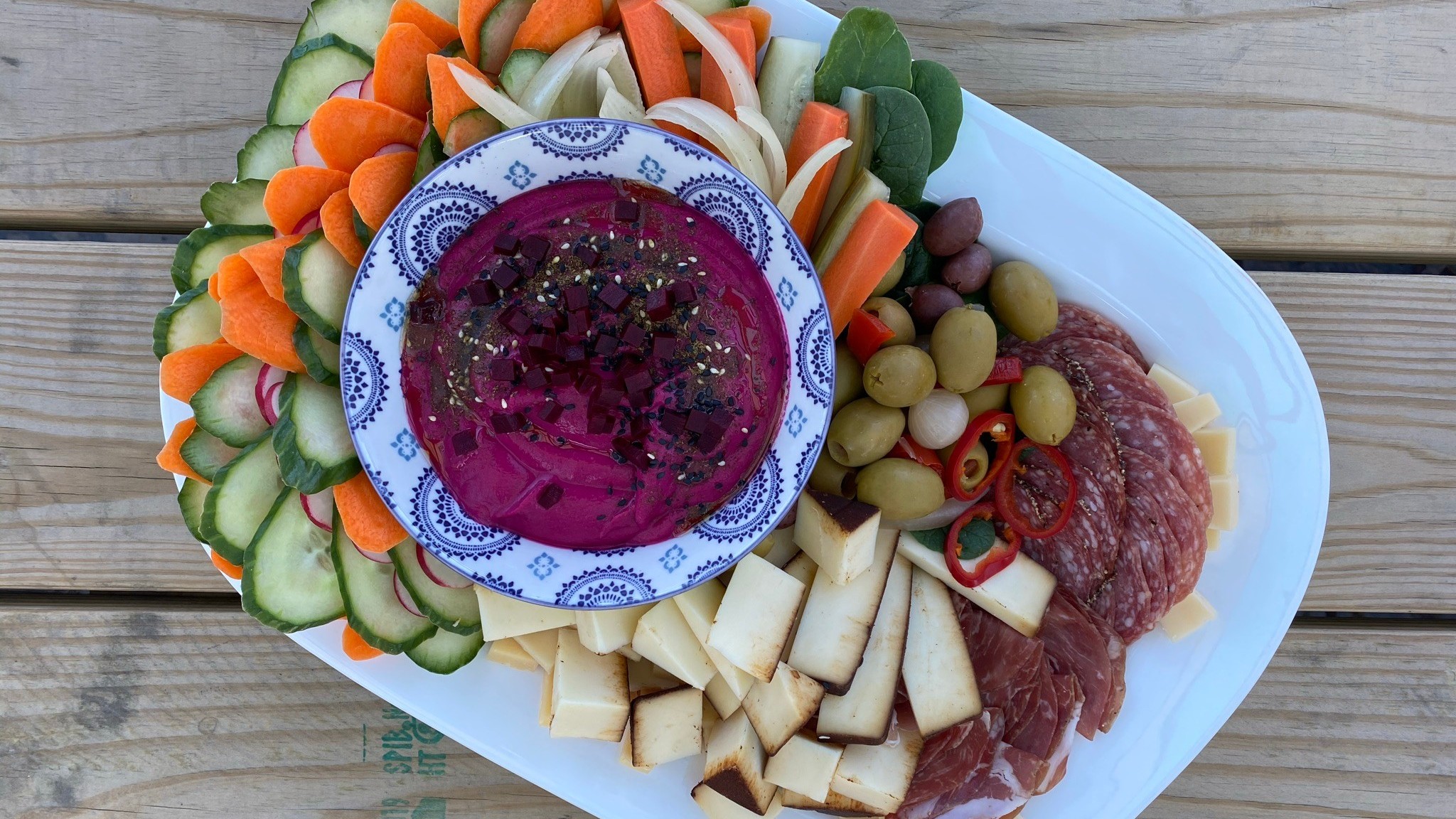 (Vegan) Quinoa tabouli, herbed cashew tzatziki and fresh herbs.
