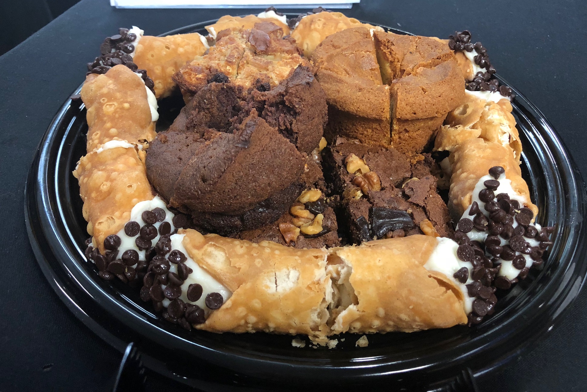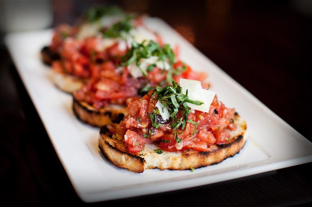 (Serves 20) Diced roma tomatoes, garlic, extra virgin olive oil, balsamic, goat cheese, feta cheese, caramelized onions, roasted garlic, and pesto.