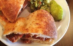 Caramelized sweet onions, green leaf lettuce and goat cheese drizzled with balsamic vinaigrette on toasted Cuban bread. Served with pesto pasta salad and your choice of dessert.