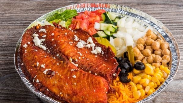(Per Person) Tilapia served with rice, romaine lettuce, tomatoes, onions, cucumbers, white sauce, and hot sauce.