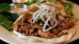 Seasoned beef and lamb served with chopped pickles, tomatoes and onions with Greek tzatziki sauce, served with your choice of salad and a mamoul cookie.