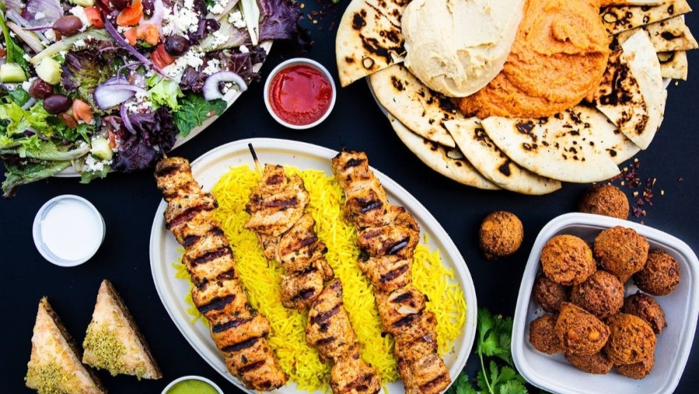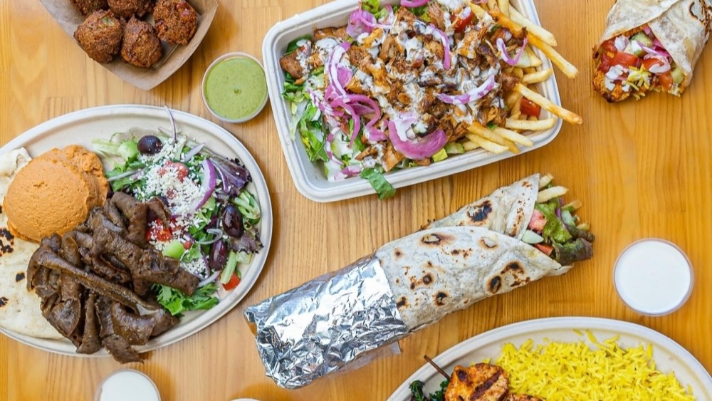 One pound of roasted oven lamb, one pound of beef shawarma and one pound of chicken shawarma. Served with rice.
