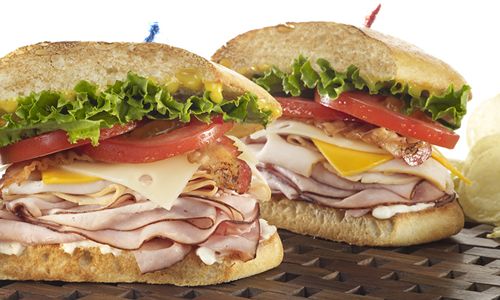 Smoked turkey, Black Forest ham, Black Angus roast beef, provolone, spring mix, tomatoes, mayo and spicy brown mustard on a baguette. Served with a pickle, chips, and a cookie.