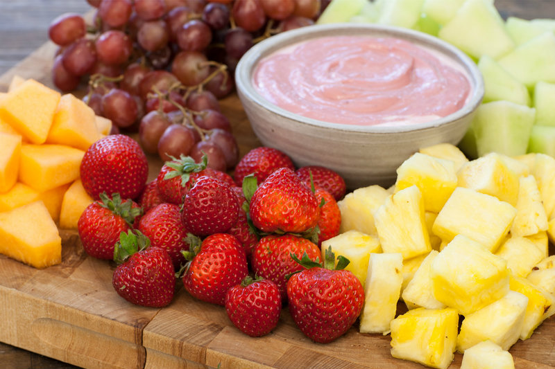 (SERVES 8-10) Assortment of seasonal fresh cut fruit served with strawberry yogurt dip.