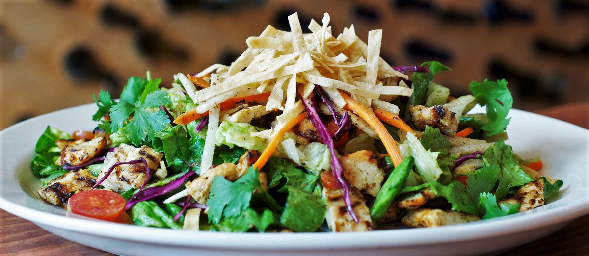 (Serves 4) Grilled chicken, jicama, tomato, tortilla strips, cumin and lime vinaigrette.