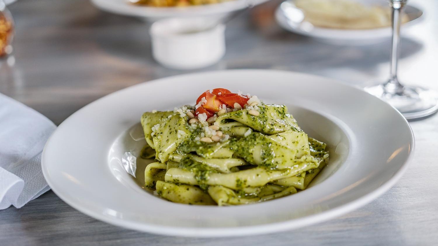 House made narrow pasta in a sauce of tomato, Nicoise olives, capers, onions, red pepper, garlic, anchovy and olive oil.