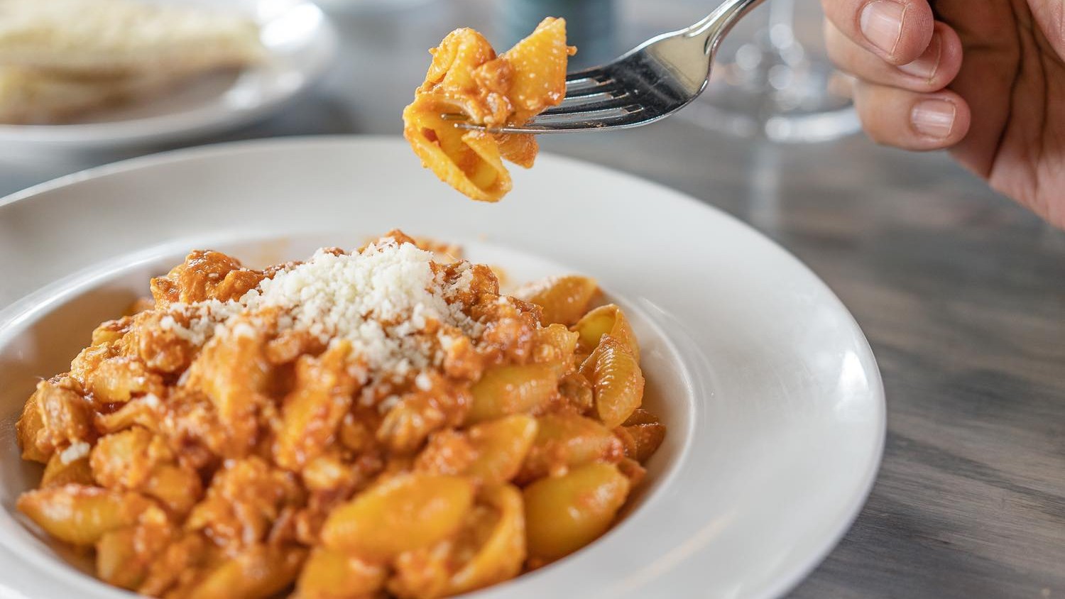 Shells in a pink sauce with chicken, pork, Genoa salami, ricotta, and aged gruyere cheese.
