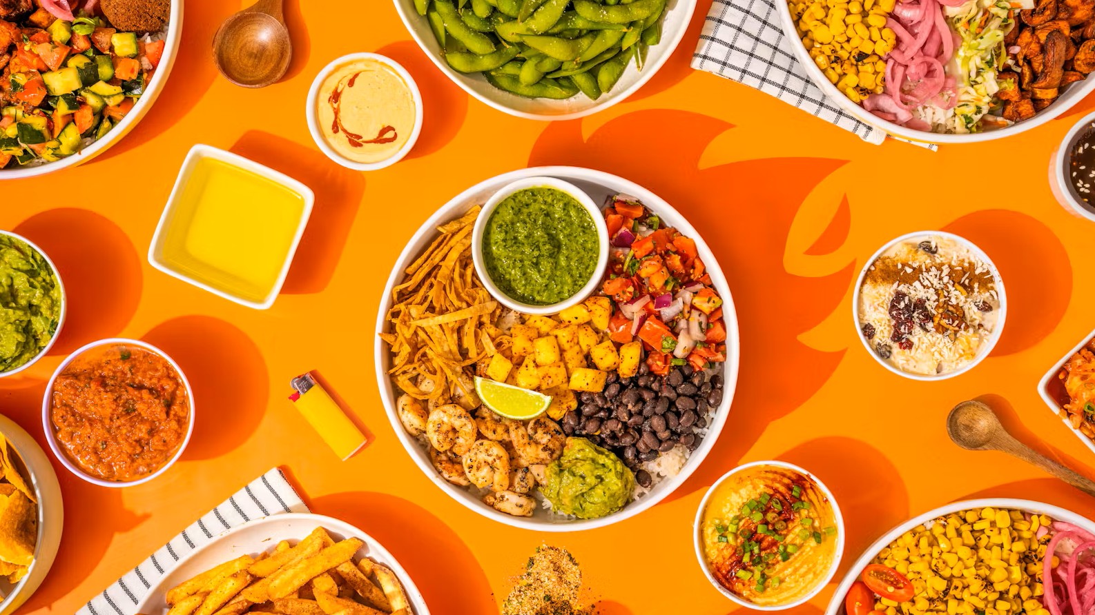 (5 oz) Your choice of base with seasoned shrimp, pico de gallo, black beans, tajin pineapple, guacamole, tortilla strips, lime wedge and cilantro lime sauce.