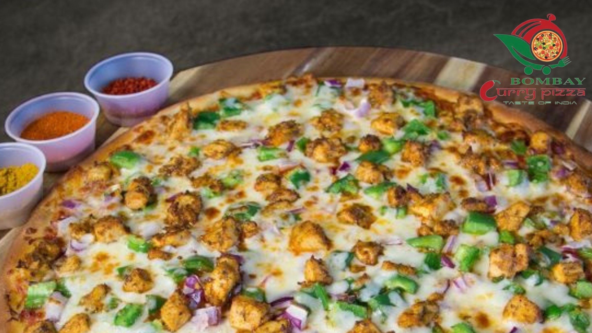 Spicy red sauce, green pepper, onion, cheese, jalapeno, Achari Masala and cilantro.