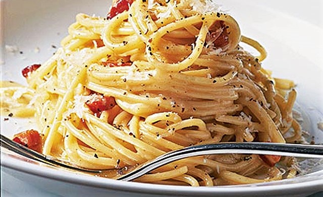 Linguini with sauteed onions, bacon and Parmesan cheese in alfredo sauce. Served with garlic bread.