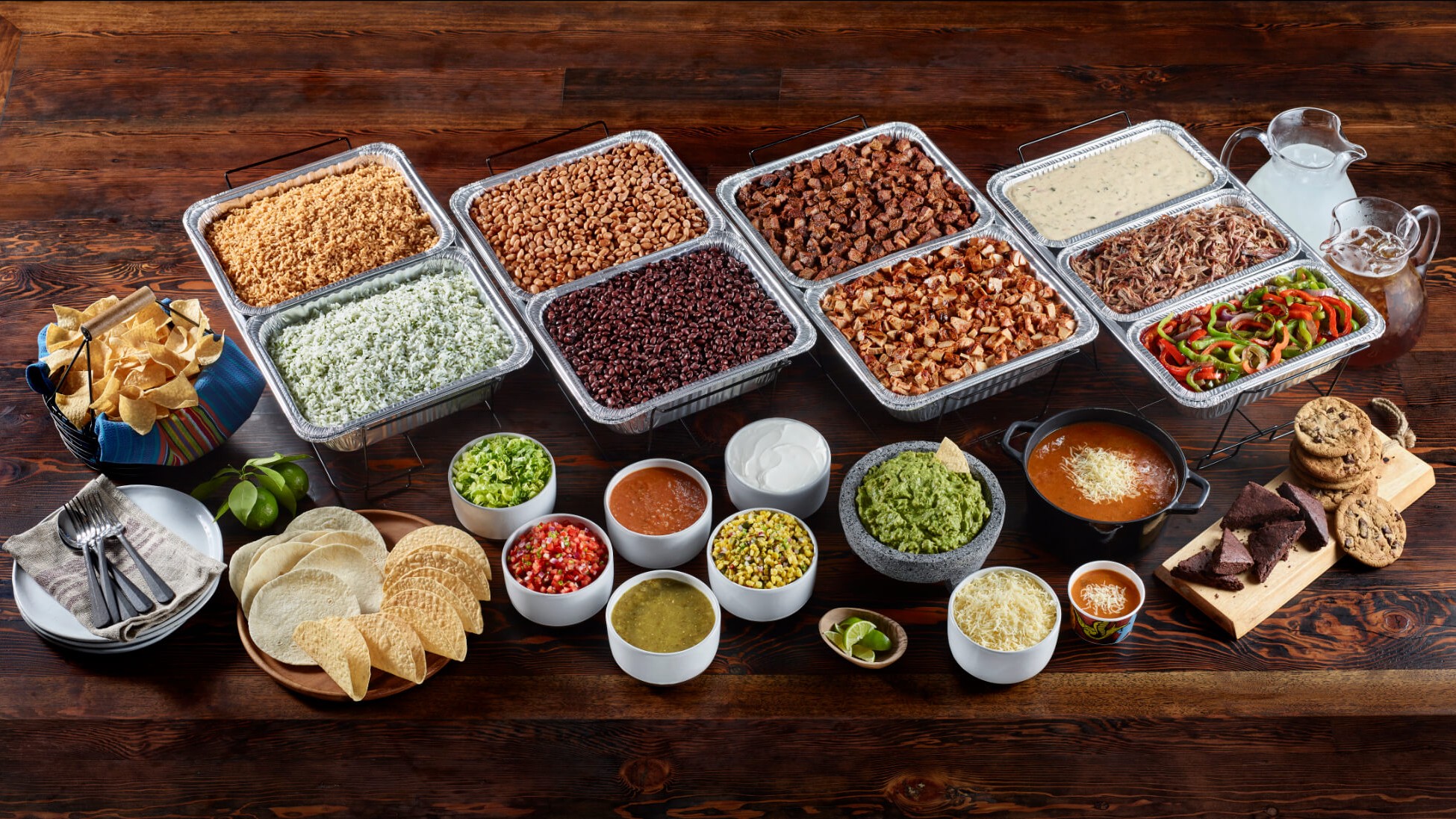 (Serves 8-10) Grilled steak, your choice of salsa, pico de gallo, hand crafted guacamole, shredded cheese, pickled red onions, romaine lettuce. Served with a large bag of tortilla chips and your ch...