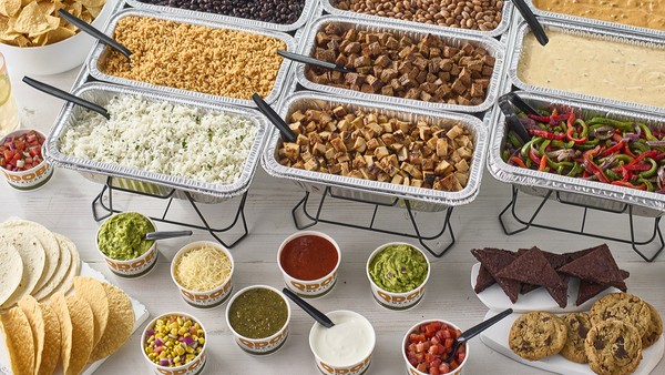 (10 MINIMUM) Build your own bowls, nachos, or salads with grilled adobo chicken and grilled steak. Includes rice, beans, quacamole, pico de gallo, chile corn salsa, red salsa, salsa verde, shredded...