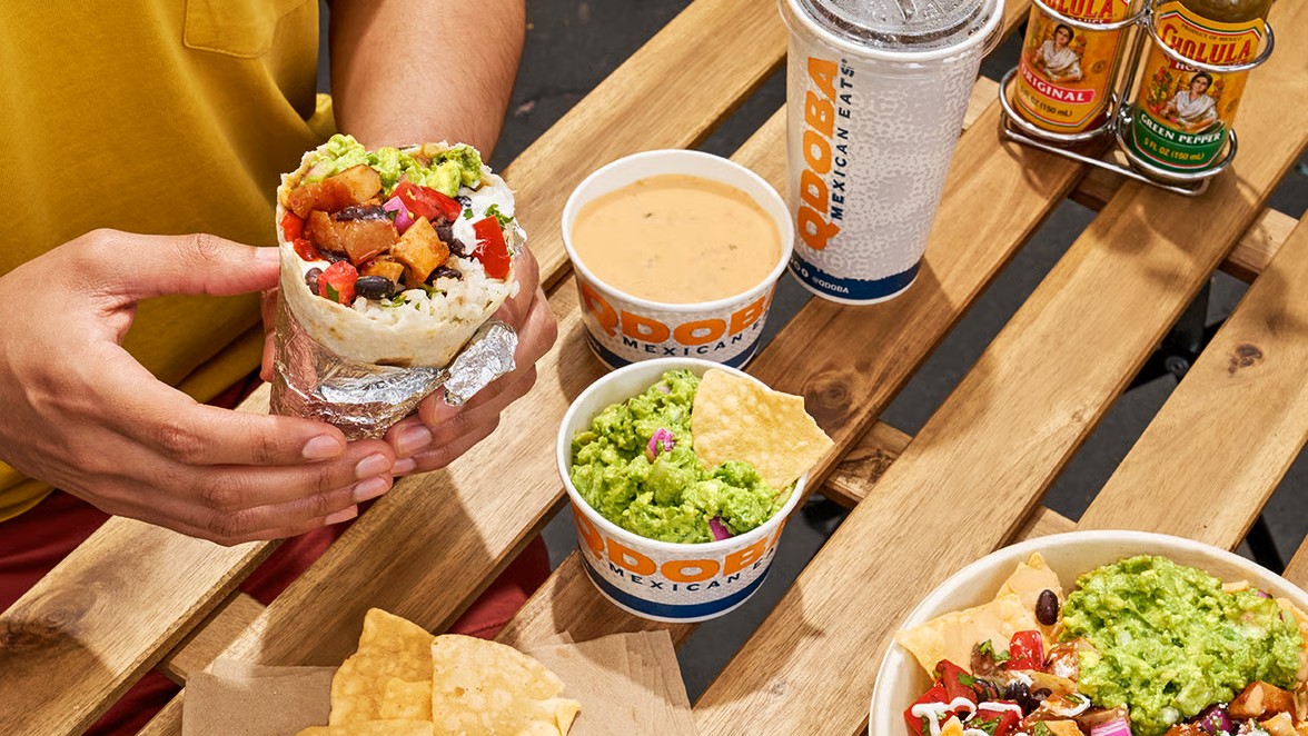 Grilled adobo chicken, signature three cheese queso, shredded cheese, black beans, cilantro lime rice, pico de gallo and chili corn salsa.
