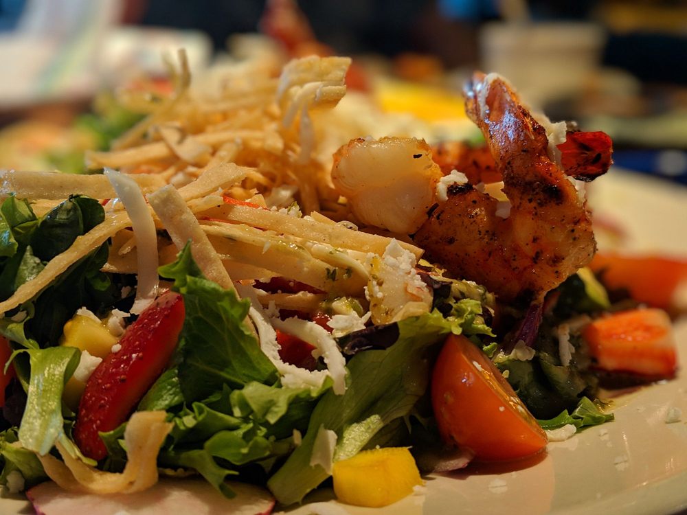 Fresh fried taco shell loaded with shredded lettuce, your choice of protein, grated cheese, black beans, diced tomato, and sour cream with guacamole, pico de gallo and your choice of dressing.