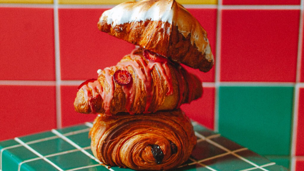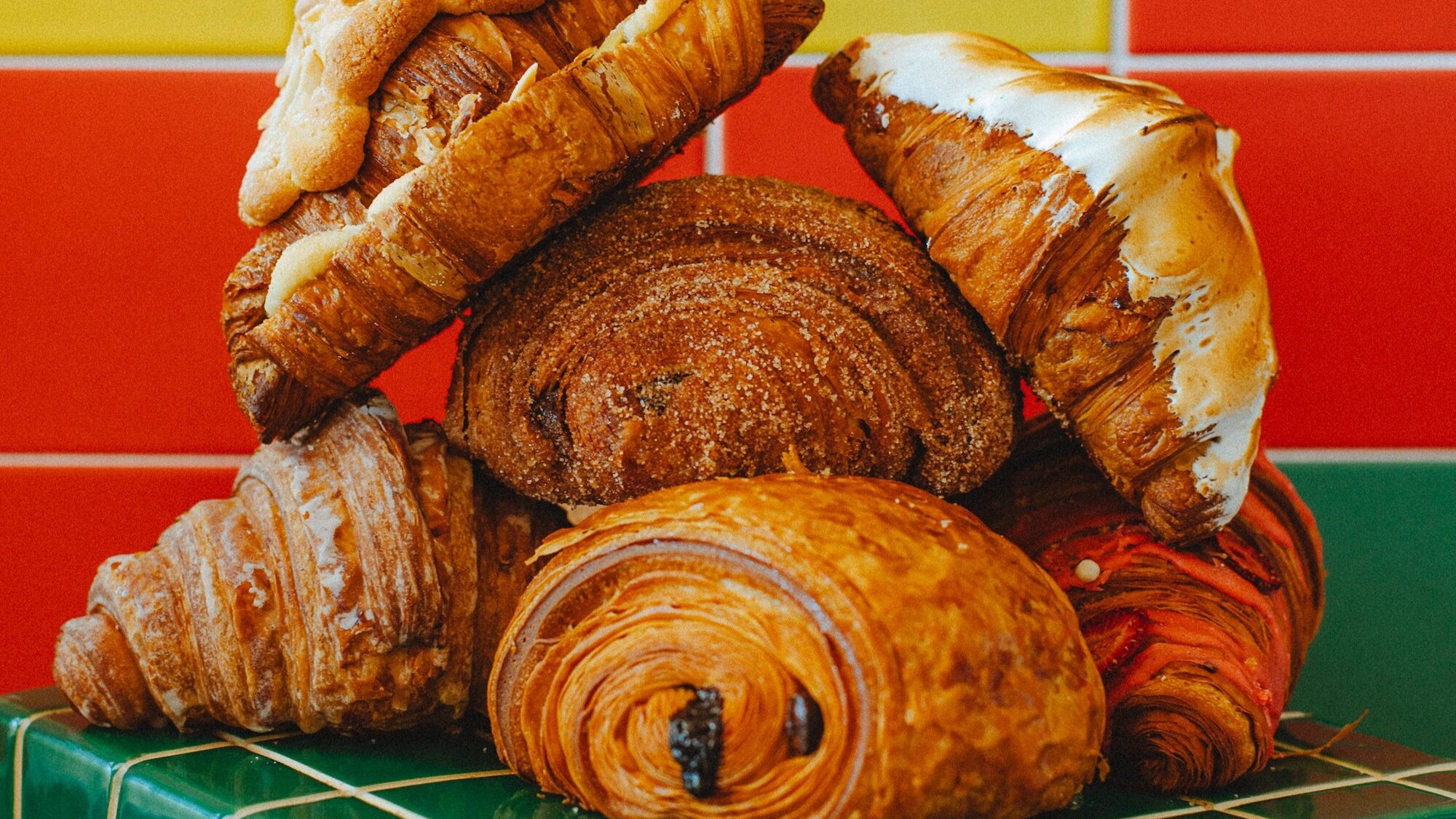 (Dozen) Includes two if each. Plain croissant, ham and cheese, chocolate fudge, brown butter cinnamon roll, everything croissant, and kouign amann.
