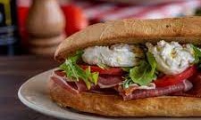 (6 minimum) Meatballs, ricotta cheese, Canadian bacon, and Wisconsin mozzarella on a French baguette, served with your choice of side.