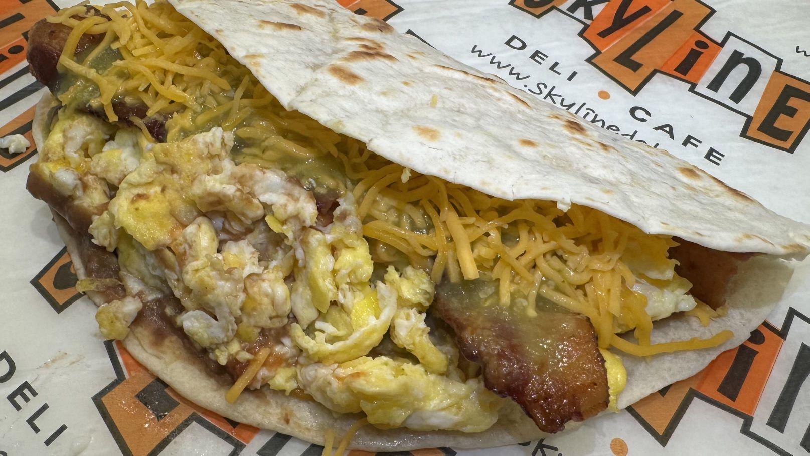 Scrambled egg, cheddar cheese, your choice of bacon, sausage, or ham on a warm tortilla. Served with house made salsa.