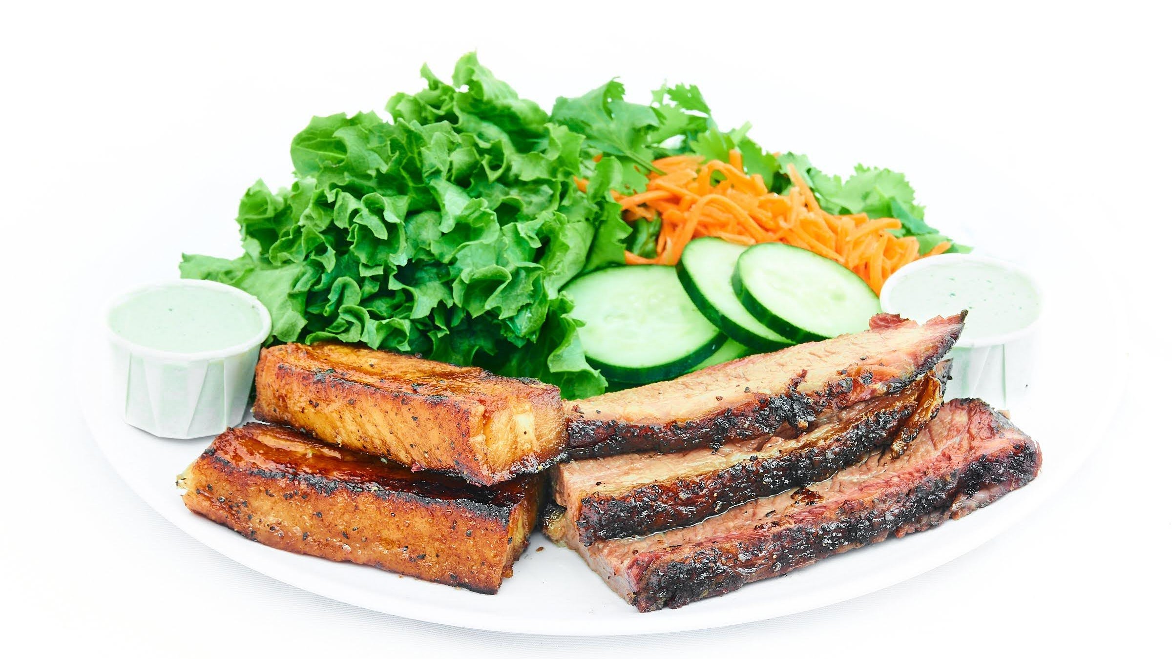 (10 Minimum) Lettuce wrap with your choice of protein, pickles, onions and BBQ sauce. Served with your choice of two sides.