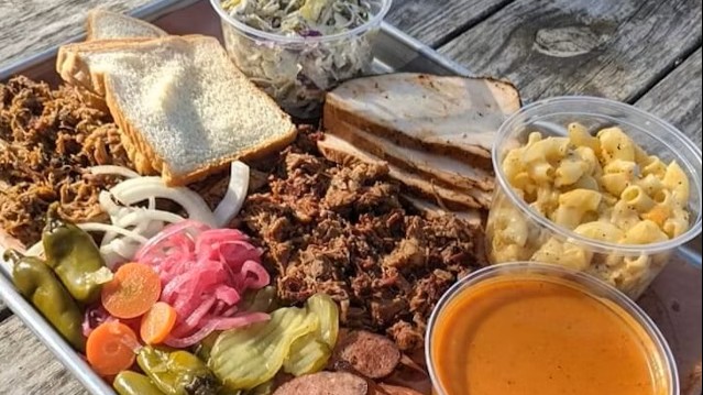 (Per Person / 15 Minimum) Your choice of two meats and two sides. Served with bread, pickles, onions, jalapenos and BBQ sauce.