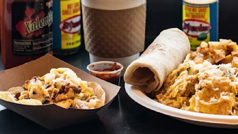 Your choice of premium tacos. Options include The Darlene (beans, potatoes, egg, bacon and cheese). The Nash (chorizo, egg, potatoes, bacon and cheese). Or The Eric (egg, potatoes, onions, cheese a...