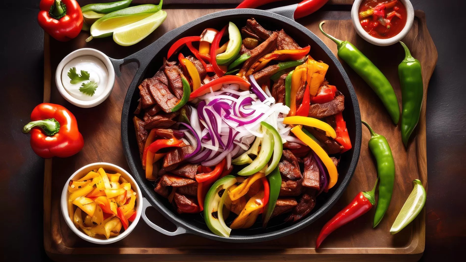 (Serves 10-12) Beef Fajita tray, with two trays of sides and an ultimate toppings package that includes salsa, guacamole, pico de gallo, sour cream and shredded cheese.