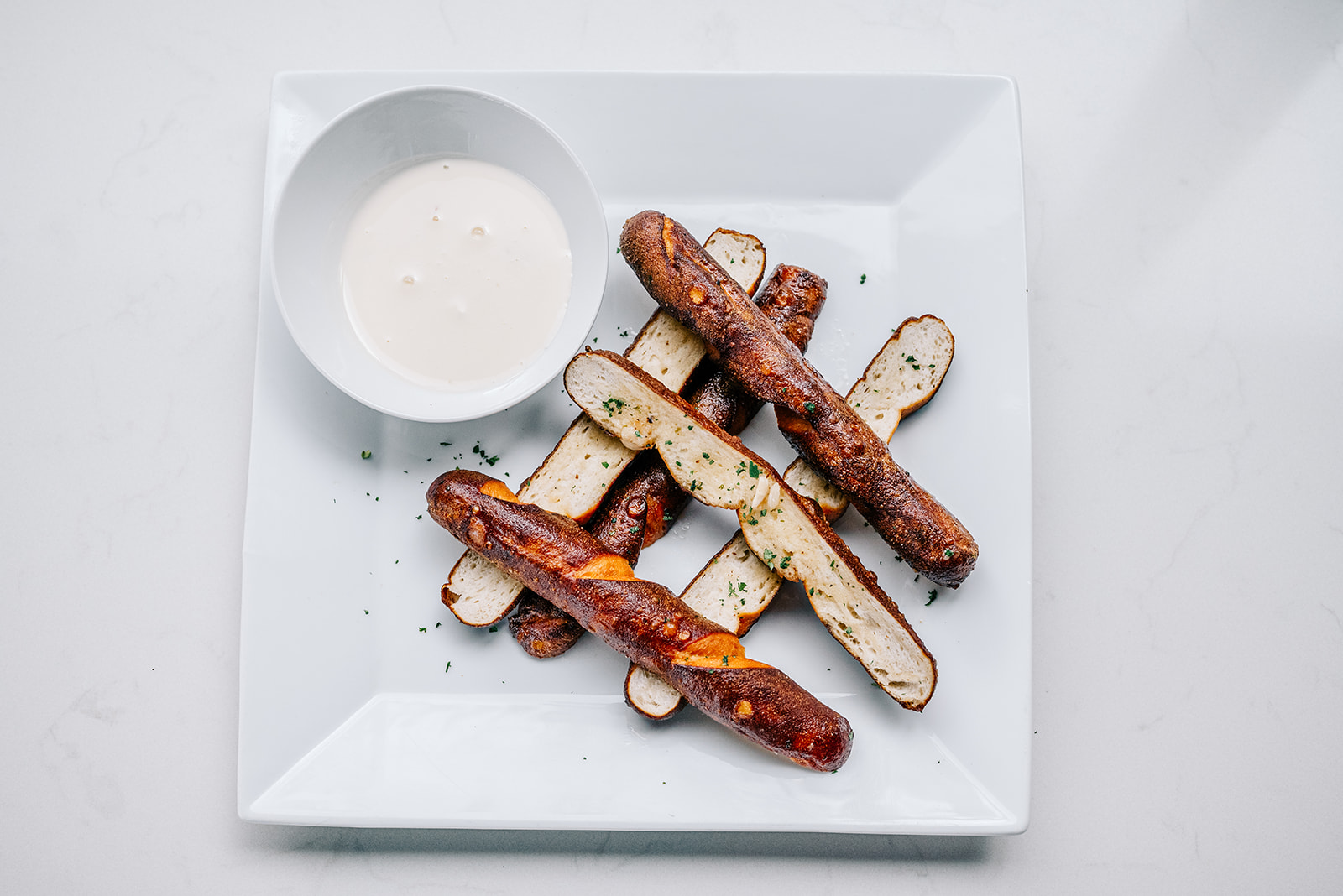 Pretzel Tossed in Garlic butter with Queso Blanco.
