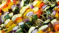 Onion, bell pepper, portabella mushroom, zucchini and squash. Marinated and grilled perfectly. Served with saffron basmati rice, grilled onions, tomato, bell pepper, hummus, pita, tzatziki sauce ...