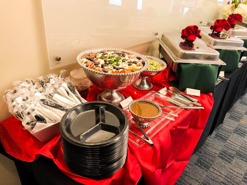 Two attendants will deliver and set up your food using buffet linen, nice platters, chaffing dishes and provide nice containers for your beverages. Then one attendant will return after your recepti...