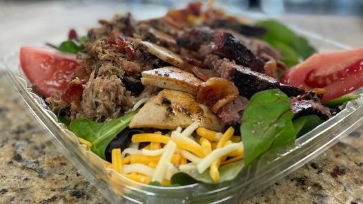 Spring mix with smoked brisket, turkey, ham, bacon, and cheese.