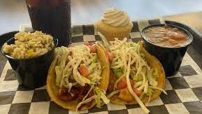 Two double smoked corn tortillas stuffed with your choice of brisket or pulled pork, topped with chipotle lime slaw. Served with your choice of one side.