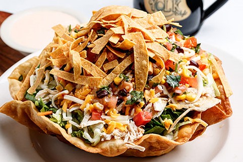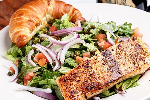 Mixed greens, topped with our homemade chicken salad made with grapes, pecans and celery, along with tomatoes, red onions, cucumbers, mixed cheeses, and croutons with ranch dressing, served with a ...