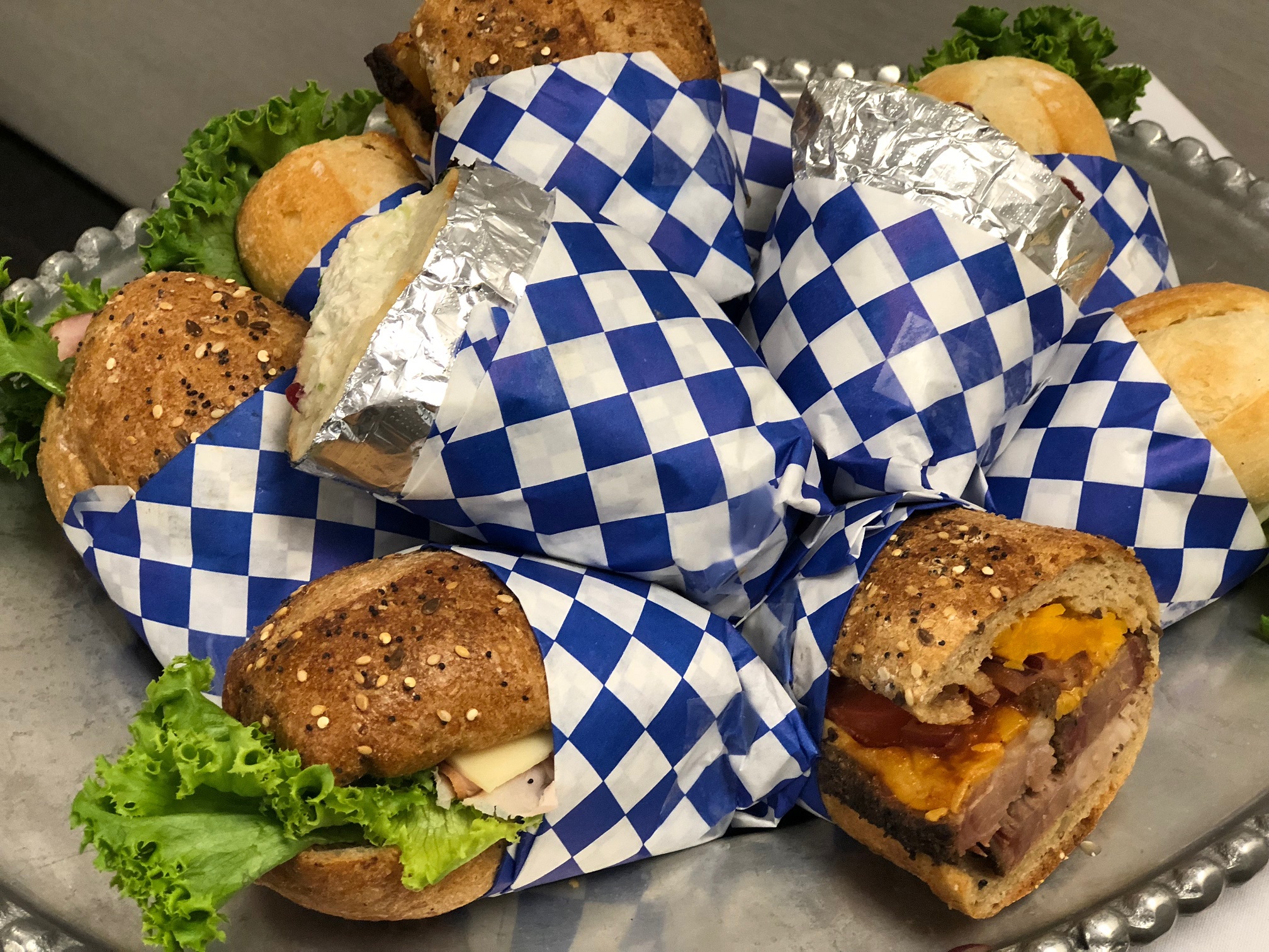(Per person / 10 minimum) An assortment of sandwiches served with chips, cookies, and your choice of side.