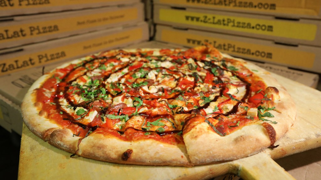 (9 inch) Hot sauce swirl as a base, layered with mozzarella, roasted chicken, red onions, garlic, black pepper, crushed red peppers, butter pickles. Topped with a Siracha swirl. Comes with a side o...