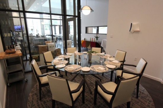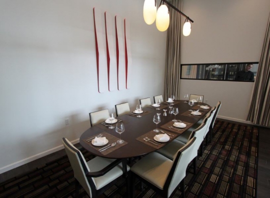 The large conference table with plush seating for 12 is perfect for board meetings, presentations, private dinners, team building, and more.