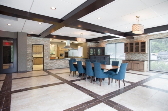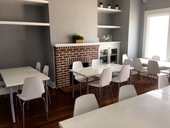 The event room is 1,000 square feet and can be utilized as a dance floor, with chairs aligned in a classroom setting, or as a calming space for group Yoga instruction.